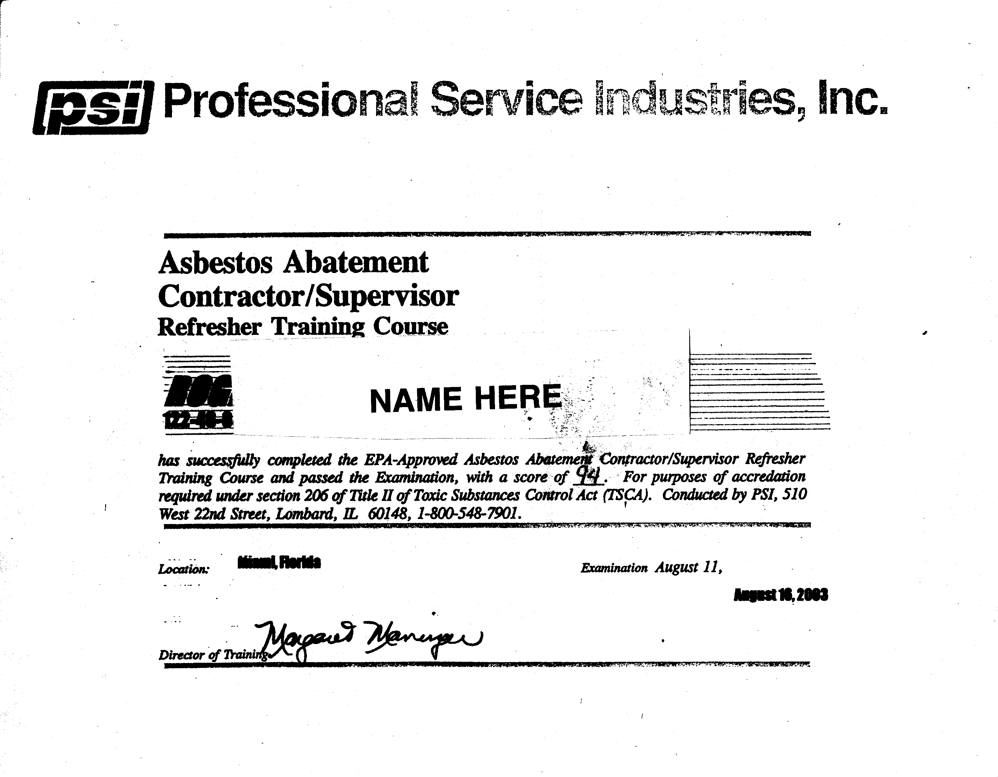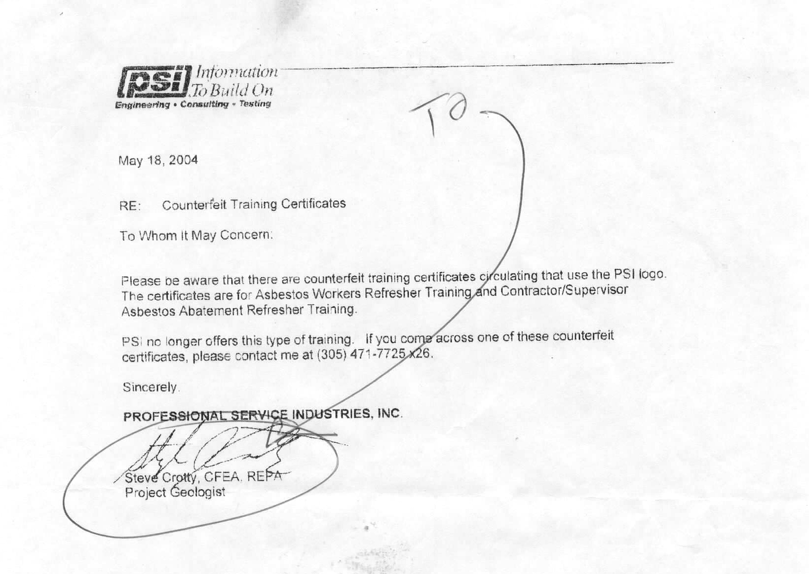 Bogus PSI Certificate Bogus PSI Certificate (2nd version)